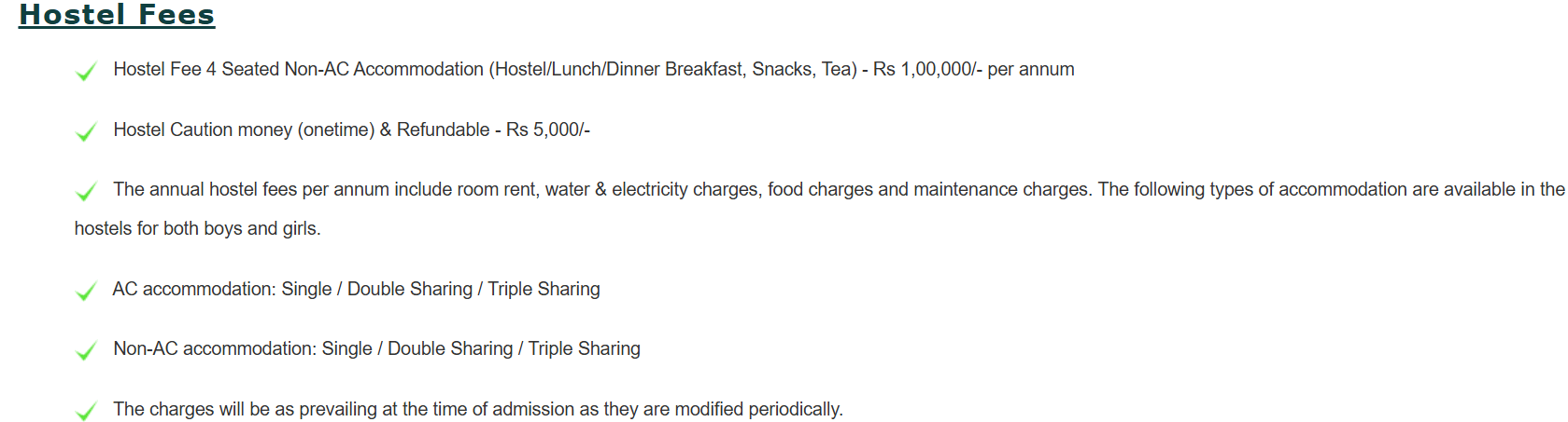 The hostels are both inside the campus and outside the campus. For students outside the campus there is bus facility provided by the college itself.