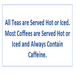 All Teas are Served Hot or Iced Most Coffees are Served Hot or Iced and Always Contain Caffeine