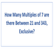 How Many Multiples of 7 are there Between 21 and 343 Exclusive