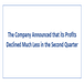 The Company Announced that its Profits Declined Much Less in the Second Quarter