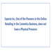 Experia Inc One of the Pioneers in the Online Retailing in the Cosmetics Business Does not have a Physical Presence