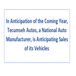 In Anticipation of the Coming Year Tecumseh Autos a National Auto Manufacturer is Anticipating Sales of its Vehicles