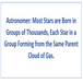 Astronomer Most Stars are Born in Groups of Thousands Each Star in a Group Forming from the Same Parent Cloud of Gas