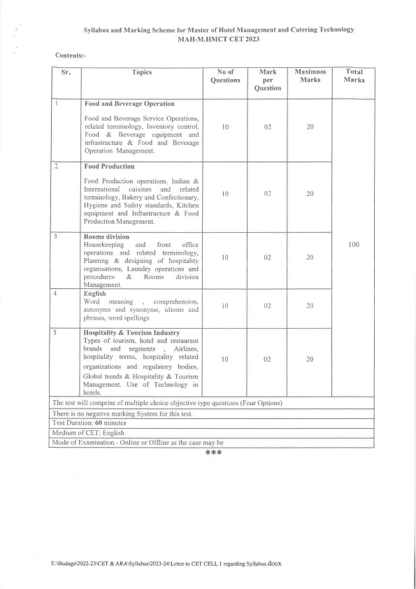 | Exam full form | Maharashtra Master of Hotel Management and Catering Technology Common Entrance Test |