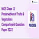 NIOS Class 12 Preservation of Fruits And Vegetables Compartment Question Paper 2022