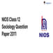 NIOS Class 12 Sociology Question Paper 2011