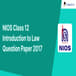 NIOS Class 12 Introduction to Law Question Paper 2017