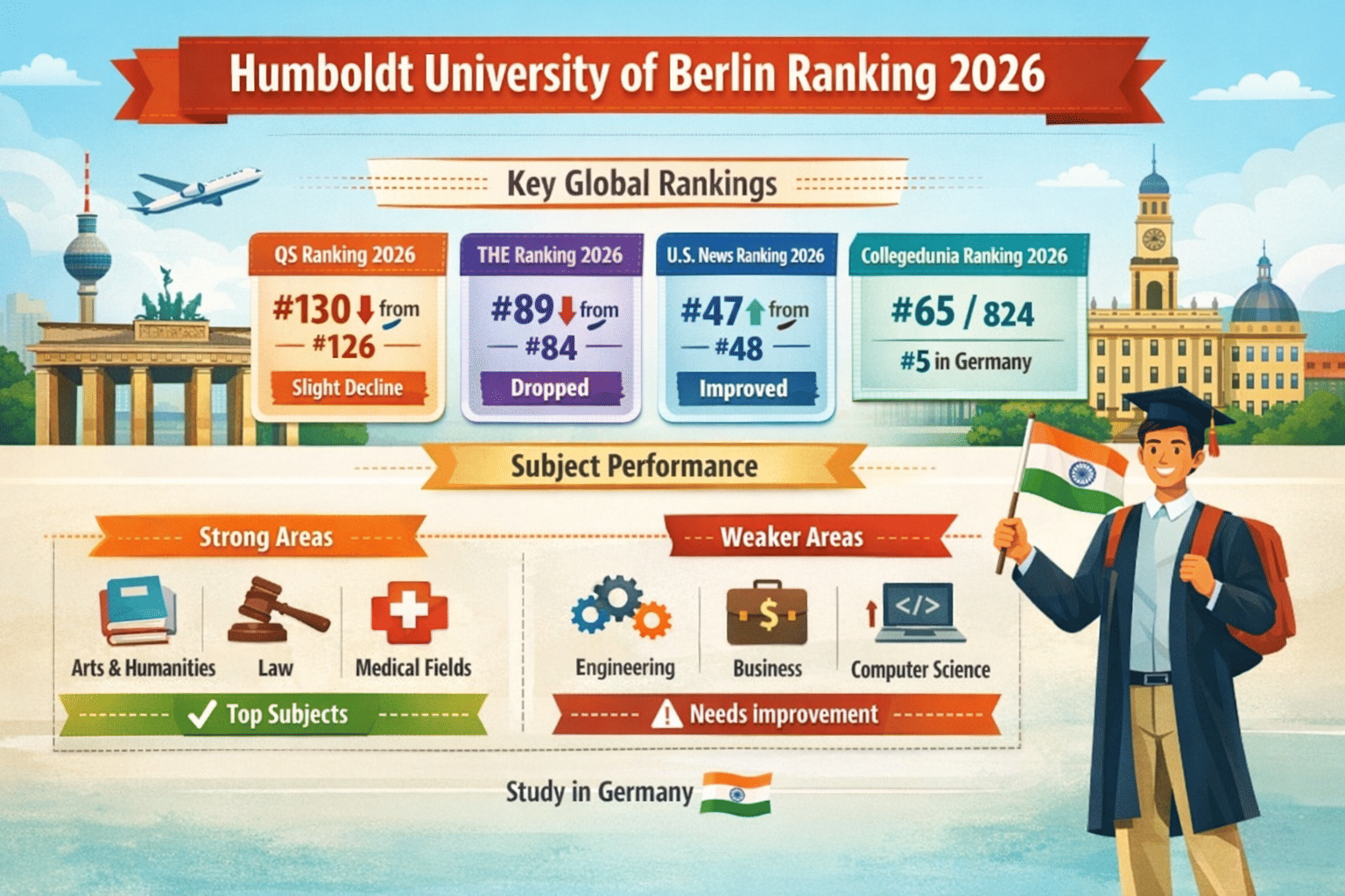 Humboldt University of Berlin shows strong subject-wise performance in the Collegedunia Study Abroad Rankings 2026.