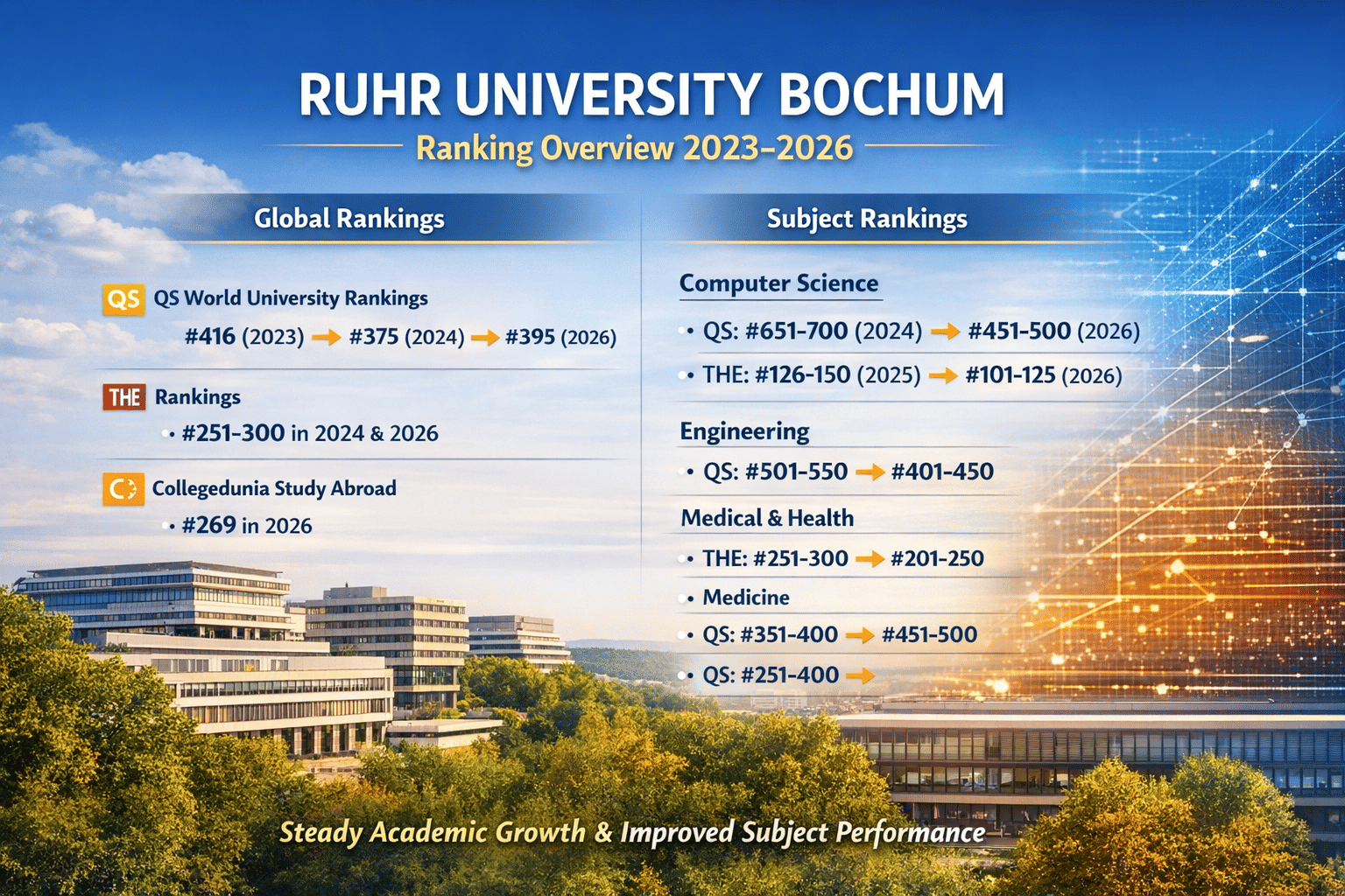 - As per Collegedunia Study Abroad rankings 2026, Ruhr University Bochum has ranked #269 globally.