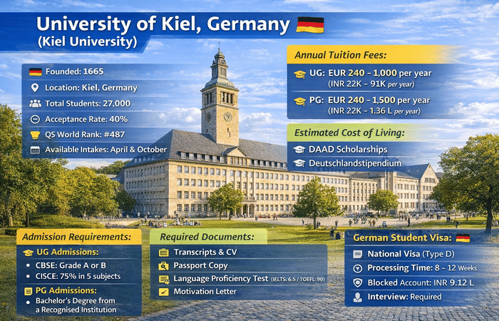 Kiel University can be a smart option for Indian students who want a well-known German public university without the heavy tuition burden seen in many other countries. The main thing to focus on is planning early, because admission, APS, housing, and visa steps take time. Kiel is also a good choice for students who prefer a peaceful and student-friendly city instead of very expensive metro areas. If you are serious about studying in Germany and want a good balance of affordability, academics, and future career scope, Kiel University is definitely worth considering.