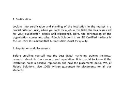 Fiducia solution is the best training institute in noida they gives the placement guarantee in best reputed companies with a good package, keshav sir and shikha maam gives us very good support and guidance.