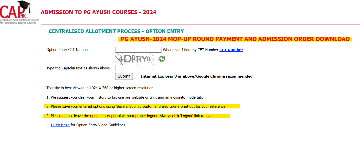 Keep checking the official KEA website for further updates and notifications related to PG AYUSH admissions.