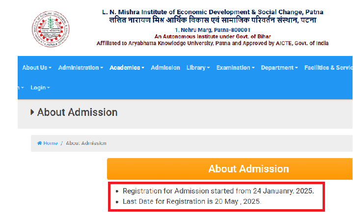 | Direct Link: LNMI Patna Admission Notification 2025 |