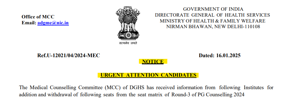 - Withdrawing Seats: Some specific seats that are reported to be filled by certain institutes would be withdrawn from the Round 3 seat matrix. The total seats will not be allotted within the present round.
