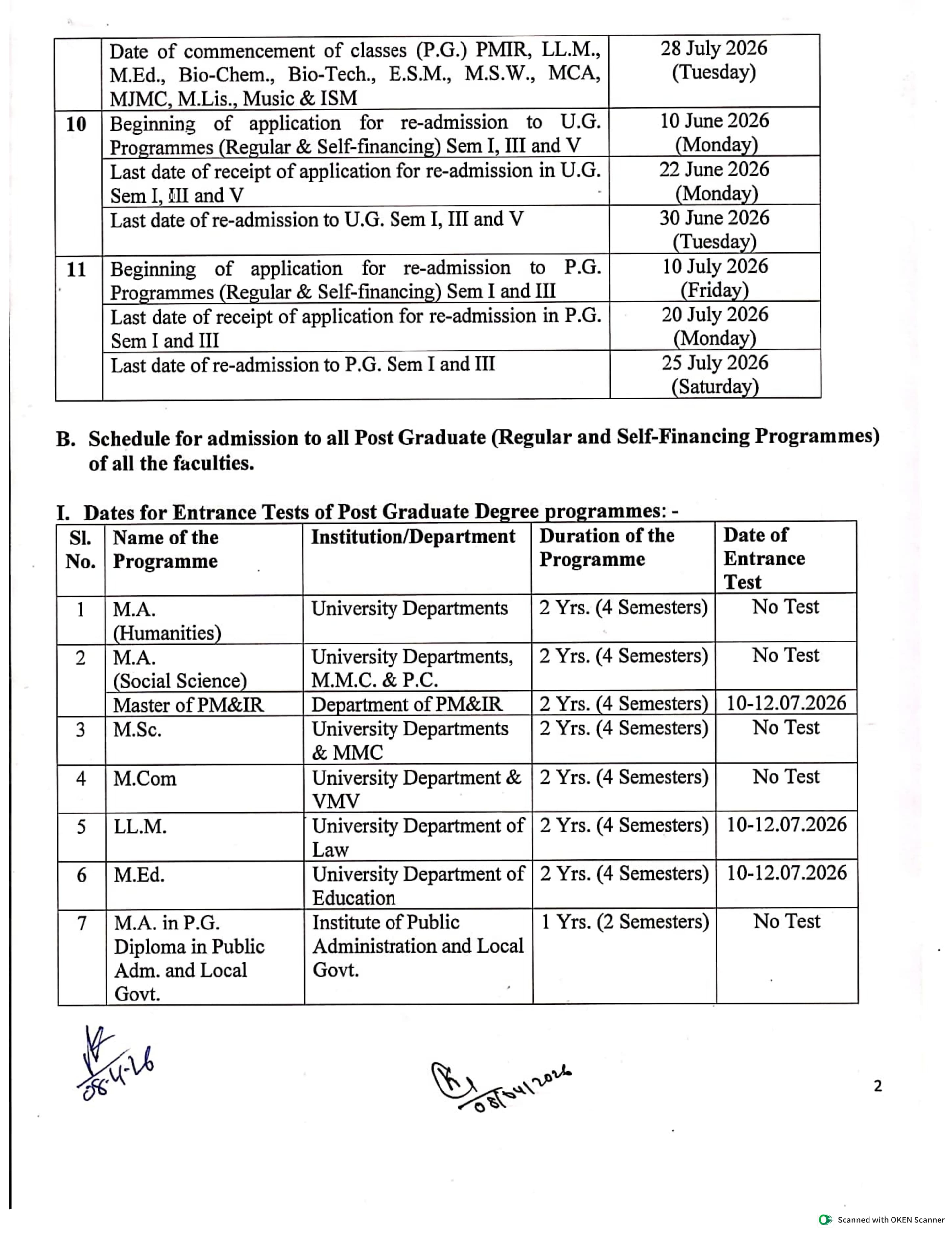 | UG Regular (B.A, B.Sc, B.Com) | June 12, 2026 | June 28, 2026 |