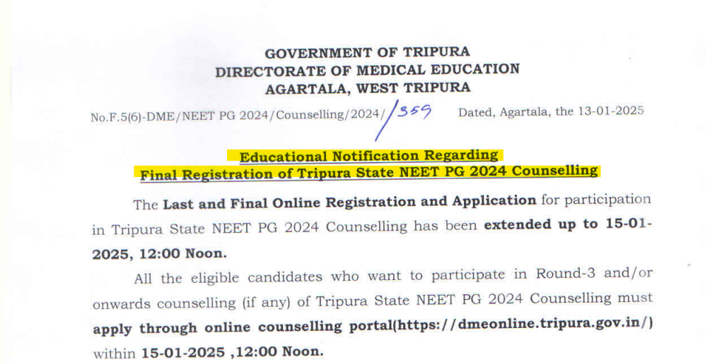 - Aspirants are advised to review previous notifications issued by the Directorate of Medical Education, Tripura, to stay updated on the counselling process.