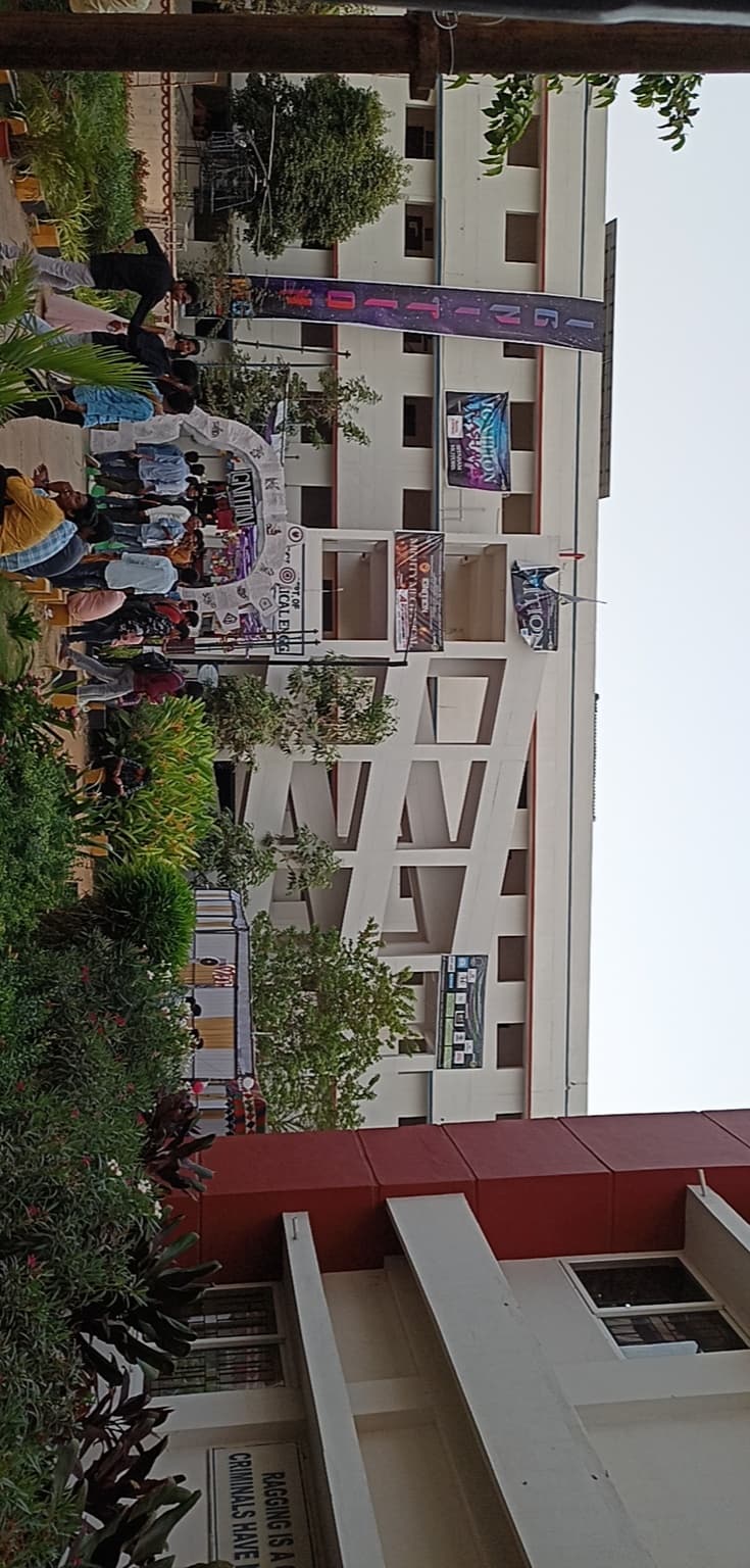 Annual fest and Tech fest is conducted every year in my college. Tech fest is celebrated in 2 days. All types of books are available in the library. Journals are also available. Both national and international Sports: Indoor and outdoor playground also available. Practice every sports competition NSS and NCC and rotary club et