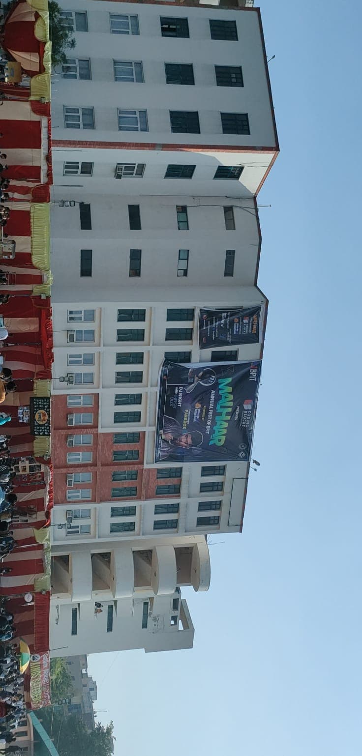 College life in bpit is too good, I mean its annual fest called malhaar was too good there are games camps DJ night performances all are top-notch the whole vibe of malhaar was fantastic it's off for two days on the first day many colleges came here to perform like dance sing there are rap battles nukkad natak Robo wars electro wars much more in fact on the 2nd day there is a star night where singers, stars, celebrities perform in this year MTV hustle runner up 'PARADOX' performs with his co-stars and many stars came there to perform, basically campus life is great library is very good in campus you found all kinds of books you need there and there is a sports team of our college you can join, societies of this college also great.