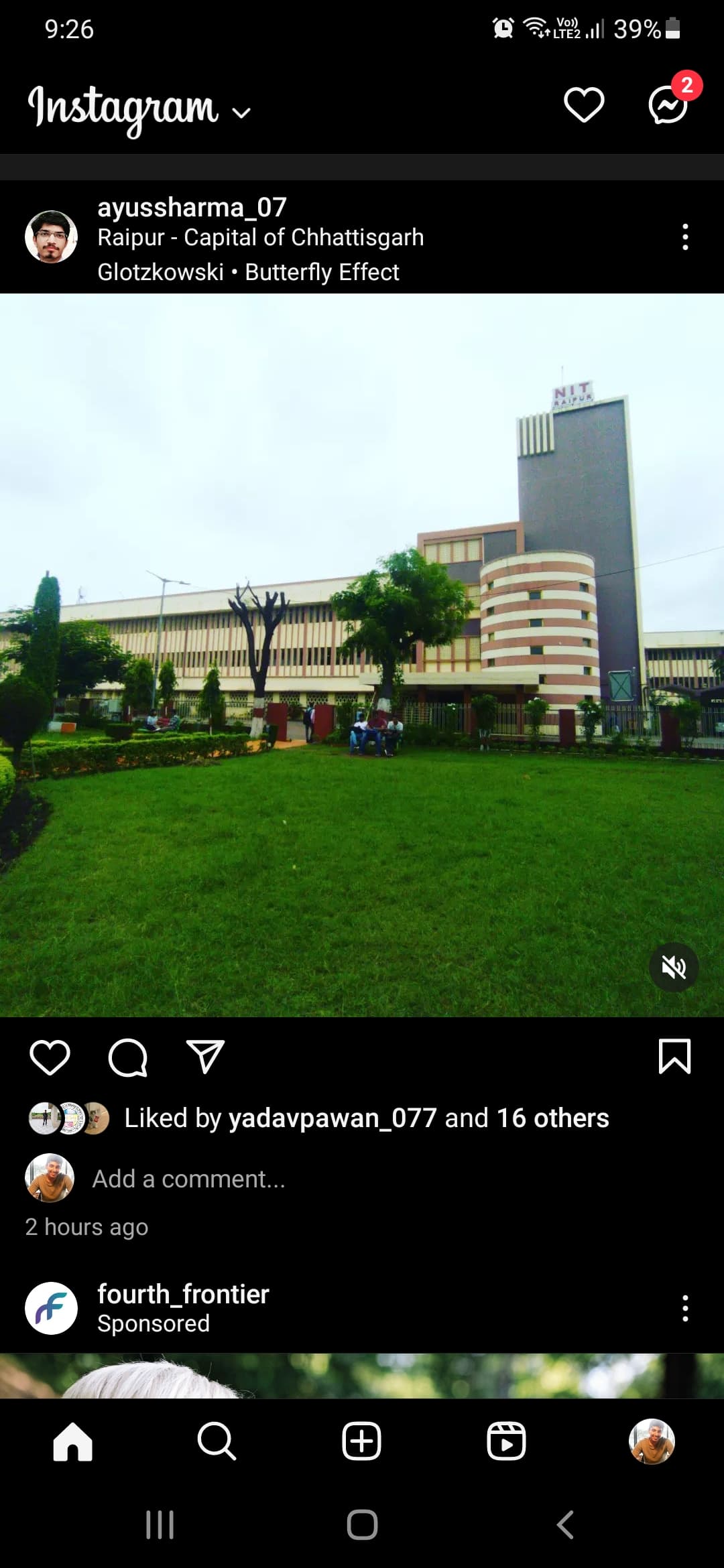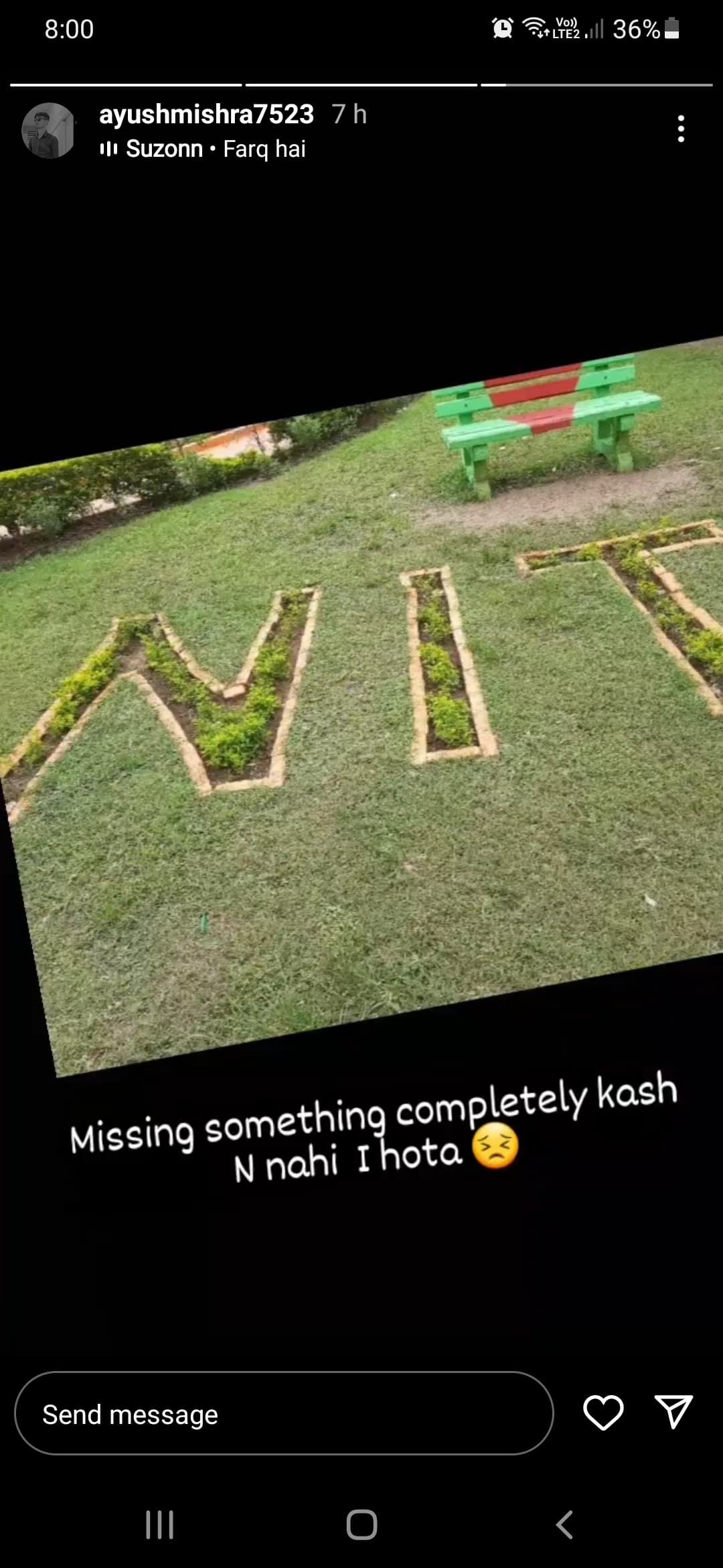The campus is quite old and just 100 acres. There is greenery around a lot of trees to enlighten the mood. There's a cricket ground which turns into a lake in the rainy season. Alumni Tower is big. Now coming to the main point the sports facilities aren't very good. Fests are super amazing. Cricket is prioritised here a lot of events happen. Girl security is very good and placement is decent. Should be in the top 12 NITs.