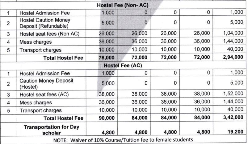 The hostel offers spacious double-seater rooms equipped with modern amenities such as an AC, cooler, two wardrobes, two study tables, chairs, a round table, and a balcony with scenic views. The facilities include a library, a gym, a table tennis pool, a cricket ground, and board games, although some equipment requires maintenance.